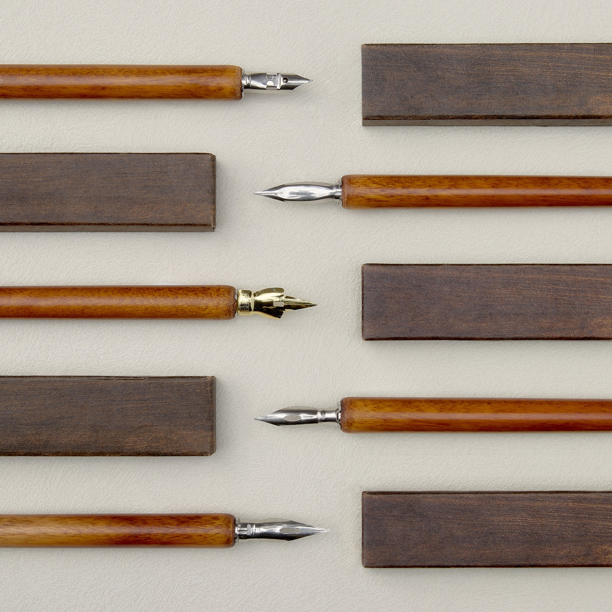 A simple but sufficient pen to begin your journey into handwriting. With a clean and basic design, this dip pen allows you to easily experience the charm of handwriting with ink. It is compatible with a wide range of standard nib sizes, so you can choose the style that best fits your writing preferences. The engraved Wearingeul logo adds a touch of elegance. Due to the natural characteristics of the wood, there may be slight variations in color. Please enjoy these differences in grain and shade as part of the unique character of your pen.